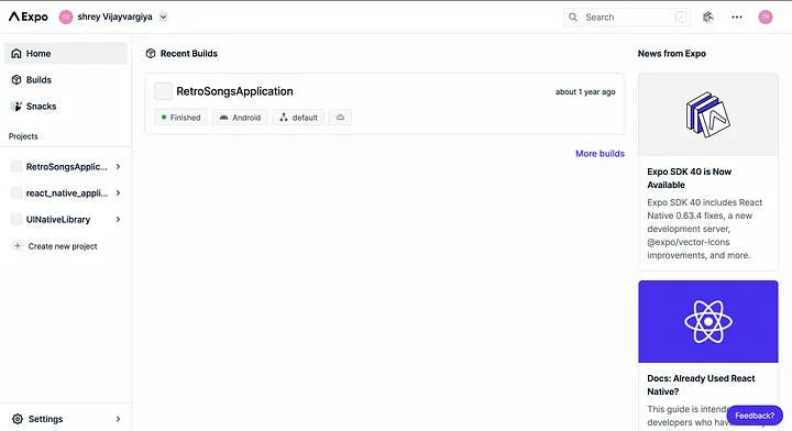 If everything works as expected after installing the package and creating an account in expo.io you can see your email from whom you have logged in.